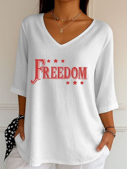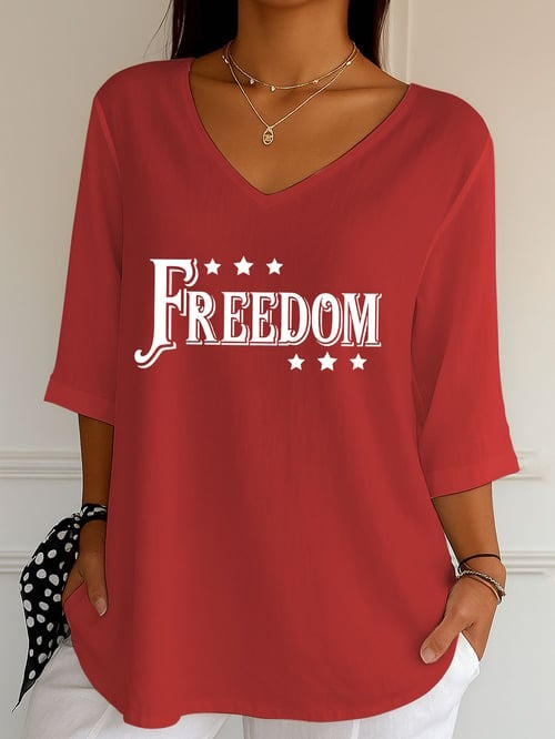 Charlie Kirk Freedom V-Neck Shirt Charlie Kirk Memorial Shirt Patriotic Gift For Women.