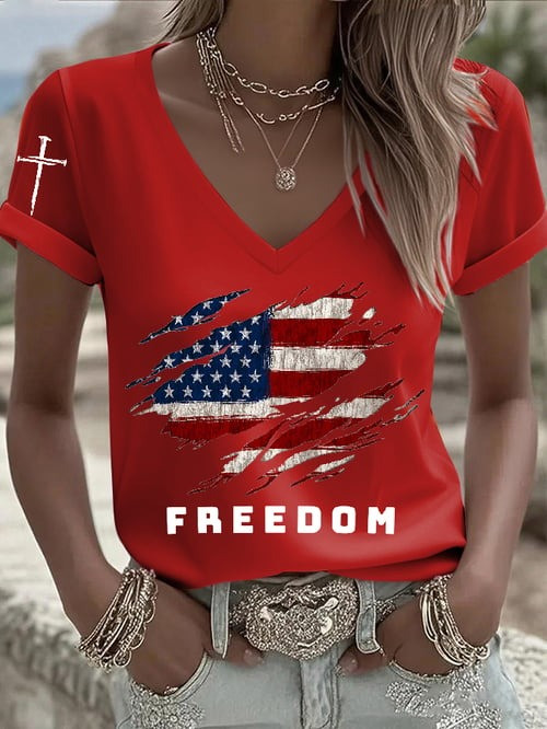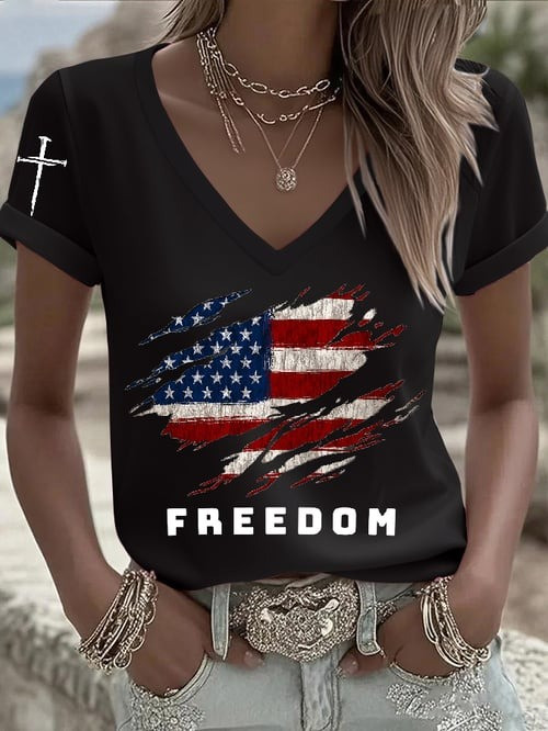 Charlie Kirk Freedom V-Neck Shirt USA Flag Turning Point USA Freedom Clothing Gifts.