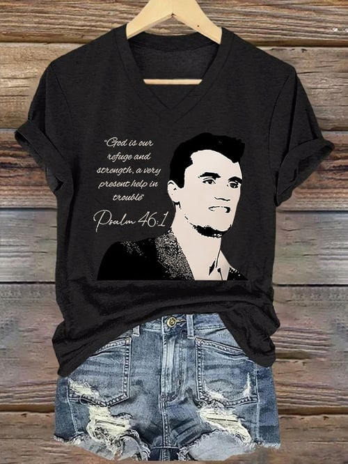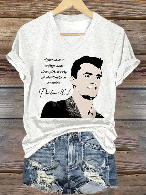 Charlie Kirk Merch V-Neck Shirt God Is Our Refuge And Strength Gifts For Him