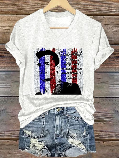Charlie Kirk Merch V-Neck Shirt God Is Our Refuge And Strength Gifts For Proud Dad.