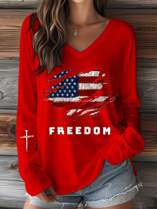 Freedom Charlie Kirk V-Neck Long Sleeve Shirt Rest In Peace RIP Charlie Kirk Merch Gifts.