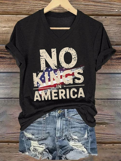 No Kings Crown Brushstroke V-Neck Shirt Anti Fascism Protest Political Activist Merch Gifts.