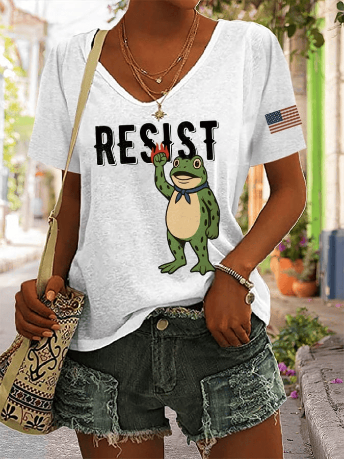 No Kings V-neck Shirt Polish Frog Resist Shirt Gift for Anti MAGA.