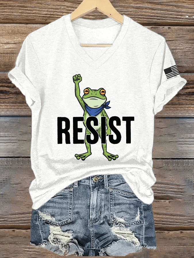 Portland Frog V-Neck Shirt FDT Print V-Neck T-Shirt Anti Trump Gift for Patriots.