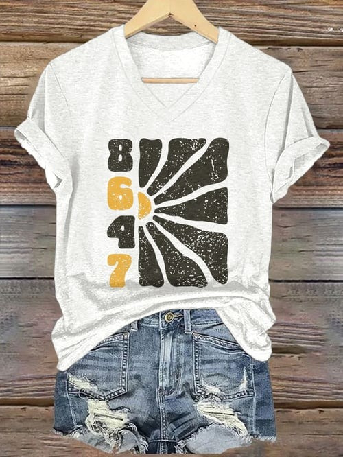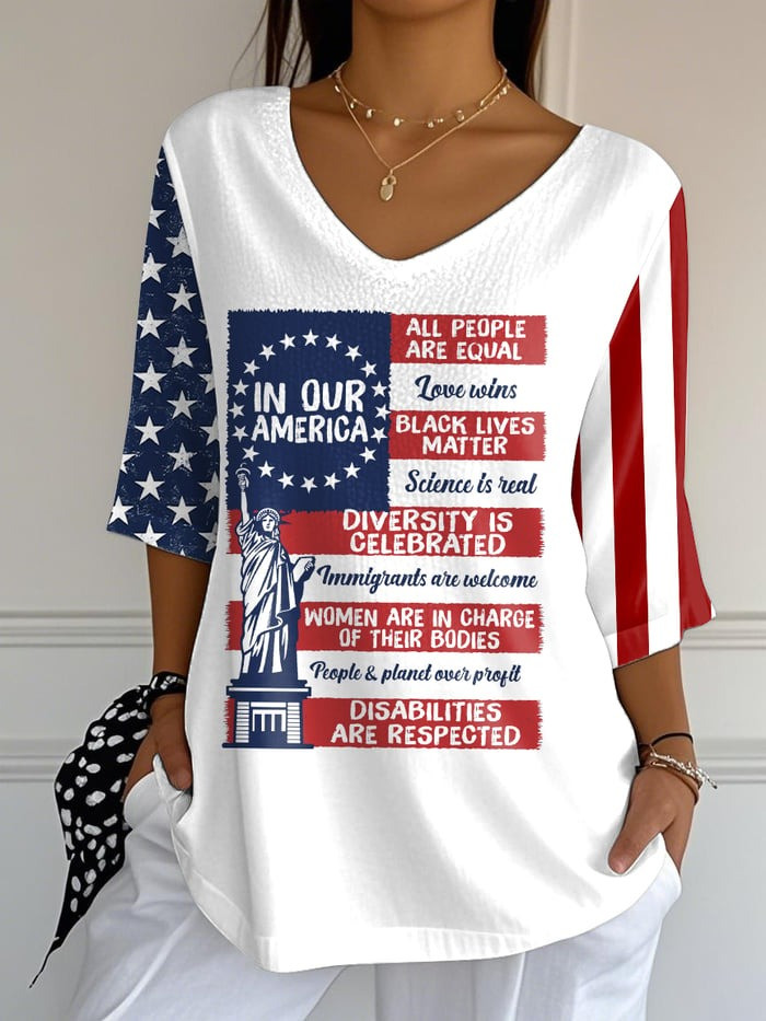 - V-neck Shirt printed in the USA.