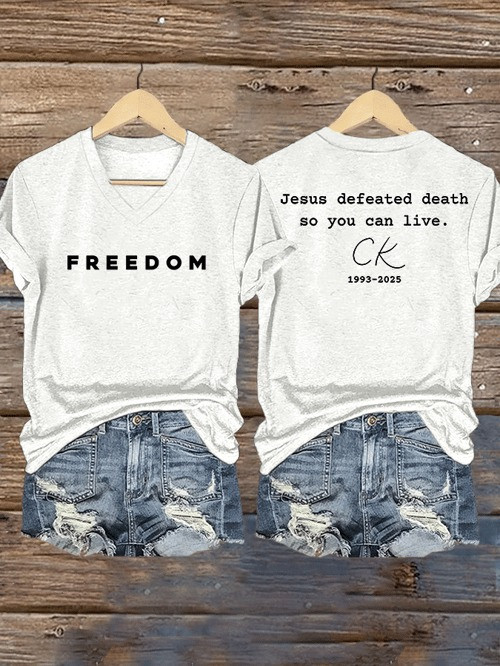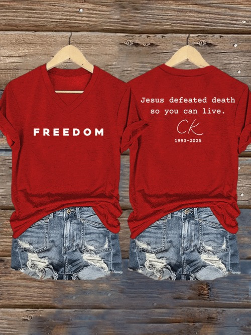RIP Charlie Kirk V-Neck Shirt Jesus Defeated Death So You Can Live Memorial Gifts