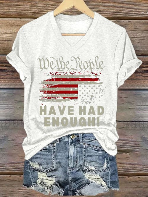 We The People Have Had Enough V-Neck Shirt USA Flag No Kings Anti Fascism Protest Merch Gifts.