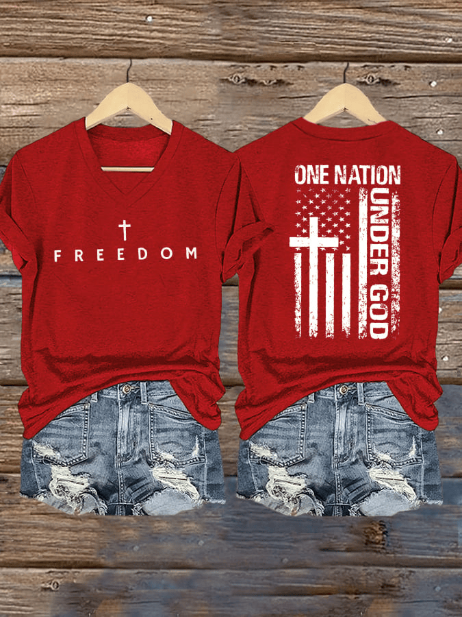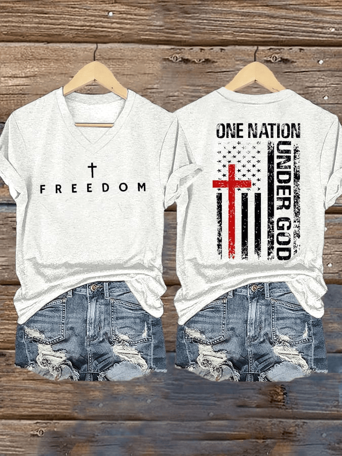 Women’s FREEDOM ONE NATION UNDER GOD V-Neck T-Shirt Charlie Kirk Clothing Gift for Wife.