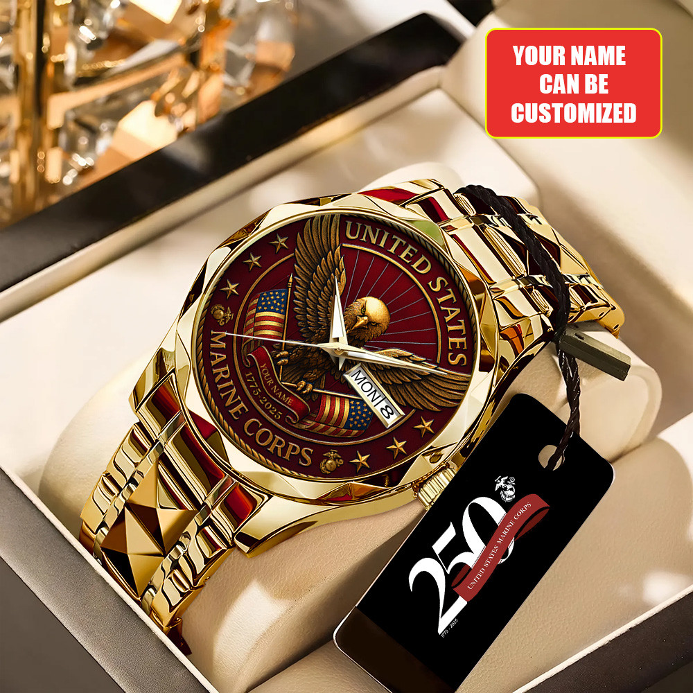 Personalized US Marine Corps 250th Anniversary Watch Honoring A Legacy Of Valor USMC Merch.