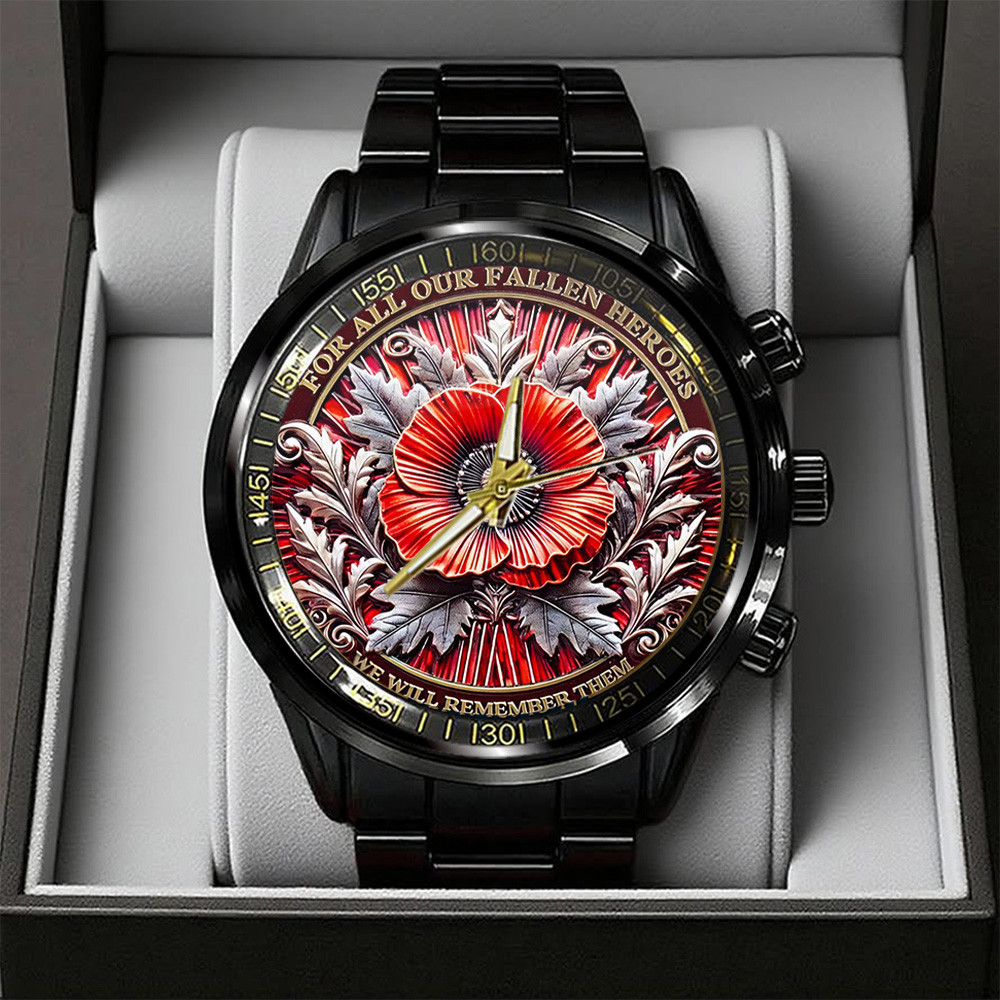 Poppy Remembrance Day Steel Watch I Remember Those Who Fought For Me Gifts For Veterans.